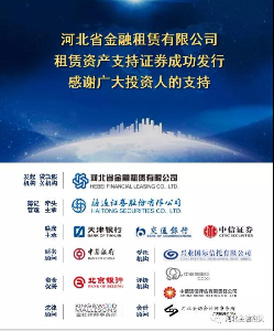 2020-11-06日前,河北省金融租賃有限公司(以下簡(jiǎn)稱“河北金租”)冀租穩(wěn)健2020年第一期租賃資產(chǎn)支持證券在銀行間債券市場(chǎng)成功簿記建檔發(fā)行,獲得了交通銀行、中國(guó)銀行等大型國(guó)有銀行及其他各類銀行的踴躍認(rèn)購(gòu),合計(jì)金額15.65億元。近年來(lái),河北金租…