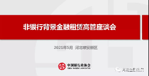 2021-06-15日前,由中國銀行業(yè)協(xié)會金融租賃專業(yè)委員會主辦、河北省金融租賃有限公司協(xié)辦的非銀行背景金融租賃高管座談會在河北雄安新區(qū)成功舉辦,中國銀行業(yè)協(xié)會專職副主任金淑英出席會議并講話,河北金租董事長徐敏俊致辭,16家非銀行背景金融租賃公…